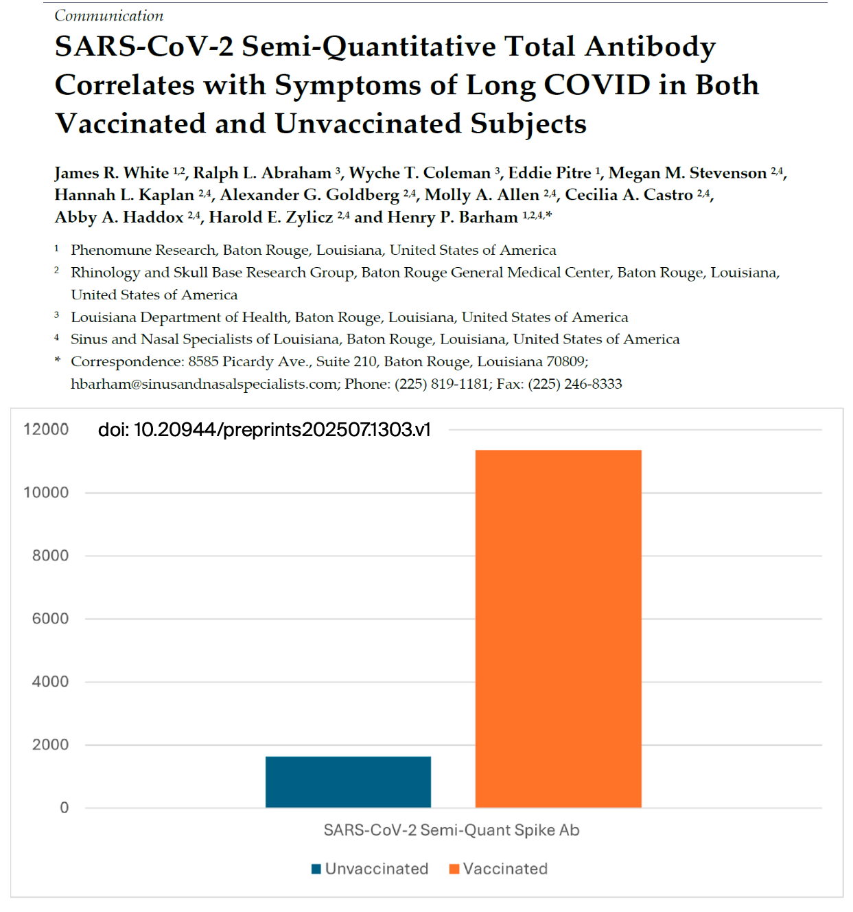 Spike Antibodies Correlate with Symptoms of Long COVID in Both Vaccinated and Unvaccinated Subjects